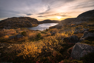 Тундровый пейзаж на севере Кольского полуострова. Мурманская область