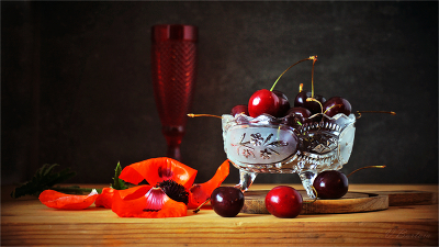 Доброго дня, Вахтанг. В целом вполне, но, на мой взгляд, нижняя красная черешенка , лежащая на деревянной доске, лишняя... Прикройте её пальцами руки и , думаю, сразу увидите... Она вошла в не оправданное противоречие с верхней красной ягодой лежащей в вазе. И удивительное дело, если нижнюю ягоду из кадра убрать, красного в снимке становится больше и он (красный цвет) начинает активно работать... Спасибо.