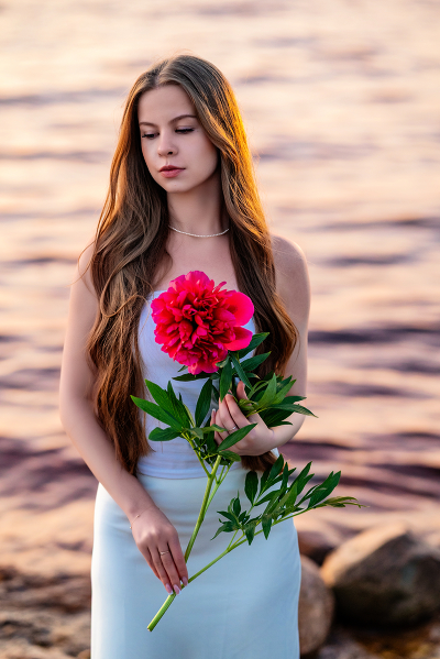, у девушки в руках пион. В названии фотографии он фигурирует.