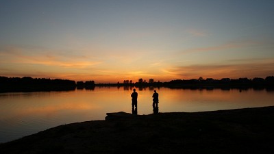 Минусы обычные (типичные) - передний план (ПП) при такой насыщенности и условиях съемки желательно уменьшить, охотников за дарами рек не размещать по центру. Фотография тогда, уверен, заиграет. Удачи!