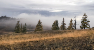 Лиственницы в тумане