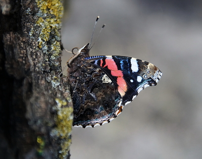 10-15 бабочек летало вокруг березы и сидело на стволе. Кто-то, видимо, выплеснул что-то сладкое на ствол. Было только два вида: адмирал и дневной павлиний глаз.