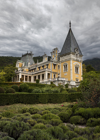 Массандровский дворец Массандровский дворец — памятник архитектуры конца XIX — начала XX века, дворец принадлежал российскому императору Александру III, расположен в Верхней Массандре на Южном берегу Крыма. Панорама склеена из 10 фотографий. |