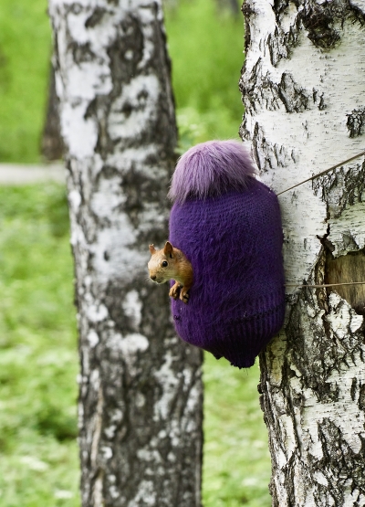 Кто-то пожертвовал красивой шапочкой, автор попросил белочку позировать, и получилась красивая фотография
