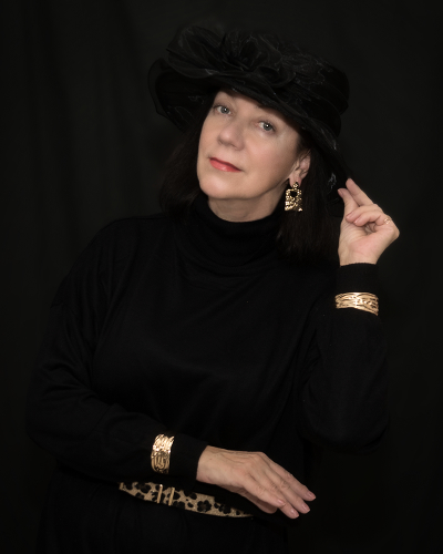 Странное решение по выбору цвета фона. Чтобы шляпа и платье почти исчезли? Я бы назвал кадр "поясок" или "бижутерия":)))