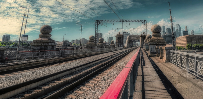 Москва, Бережковский автомобильный и Краснолужский железнодорожный мосты.