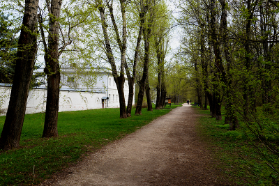 Тополёвая аллея в Кузьминском парке в Москве. Апрель 2024.