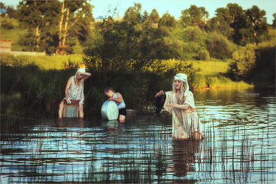 Ну это поклеп на русскую деревню , никогда ,даже самые бестолковые бабы не стали бы стирать у берега в камышах и прибрежной тине .стирка , а особливо полоскание белья , производилась в проточной воде, с мостков , подальше от прибрежной мути