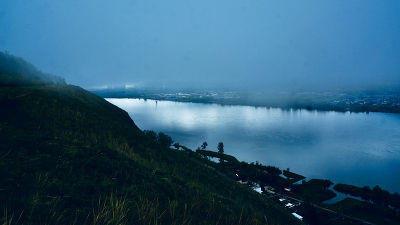 Вид на Енисей и Правобережный Красноярск с Афонтовой горы, последней вершины Саянского хребта, на которой расположен Красноярский Академгородок.
