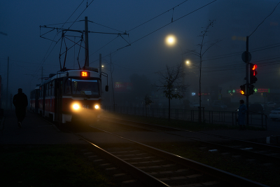 Поставлю-ка я Вам "рек", за удачную уличную зарисовку. Но перекличка фонарей трамвая и уличных фонарей, для абстракции, не катит.