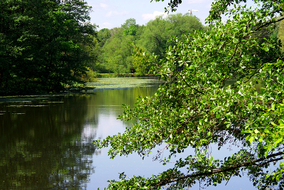 Нижний Кузьминский пруд в Кузьминском парке в Москве. Май 2024.
