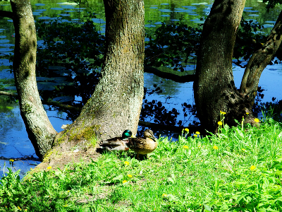Утки на пруду в Кузьминском парке в Москве. Май 2024.