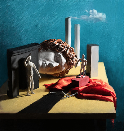 , Кирико и голова сына в одном натюрморте.