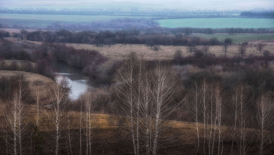 декабрь, река, деревья, поля, Башкирия