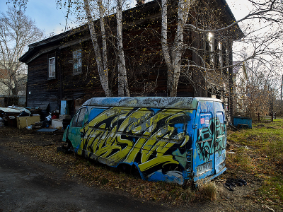 А бы не делал акцента на этот убитый и бездарно разукрашенный фургончик: дом гораздо интересней.