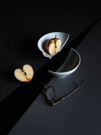 Очки здесь вовсе не нужны , а вот "срез " стола бы хорошо показать с торцов , тем более при свете с этой стороны , разрез должен быть виден до глубины "провала"