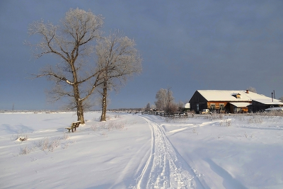 Сельская идиллия зимой... Зима в деревне — как покой, Как мудрость старых лет. Снег укрывает суету, Даря душе рассвет. Здесь каждый след — как мысль в тиши, Как эхо давних дней. И небо низко, как мечта, Над снежной полосой. |