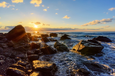 Начало восхода за тучи спряталось. Берега у бухточки Клоково, март 25