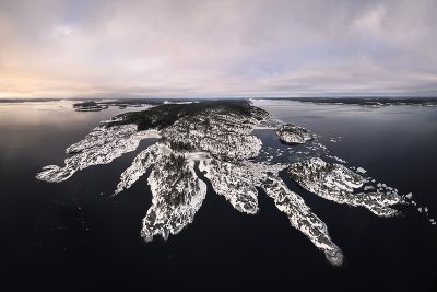 Обзорный вид на острова Ладожских шхер. Карелия, февраль 2025