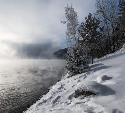 Марина Фомина, у Вас формат и не три четверти и ни квадрат. Понимаю, что желание показать тумана много-много сподвигло на такое кадрирование. но здесь Енисея многовато получилось и справа пустоты с переизбытком... как по мне, если не против, предложу, из того что есть, вертикалку в районе трех четвертей... я вообще сторонник общепризнанных форматов... в фото...)