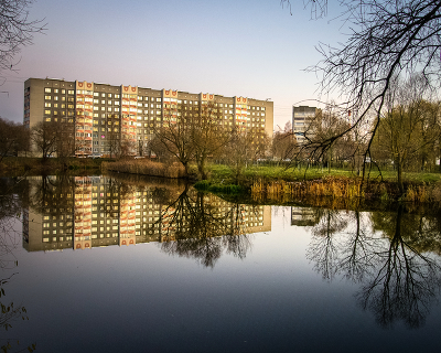 В отражении.