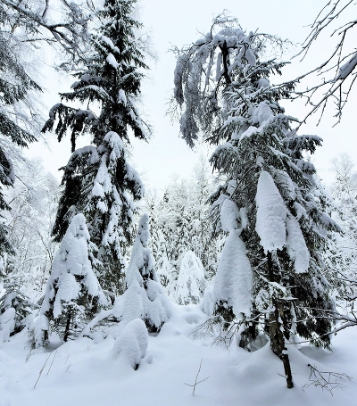 "Нахлобучив шапку набекрень, ель стоит в снегу, как в белой вате..."