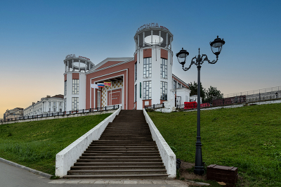 Он двухзальный, в башнях спиралевидные пандусы для выхода зрителей из каждого прямо на улицу.