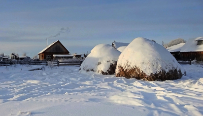«Зимний антракт деревенской жизни» Стога спят под белым пледом, Дома дремлют в тишине. В зимнем царстве, в тихом свете Всё укрыто в снежной мгле. Дым из трубы, как призрак тонкий, Танцует в холоде седом. И кажется, что мир спросонок Застыл в волшебном сне своём. |