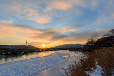 Закат над излучиной р.Рудной, перед Рудной Пристанью. 01.26