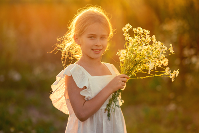 Юля с букетом ромашек