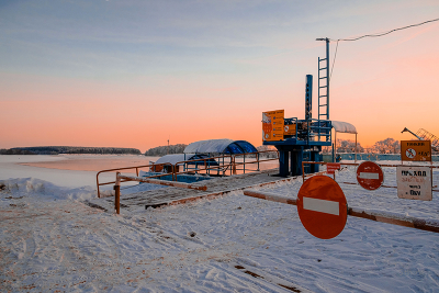 Река Ока. Паромная переправа закрыта.