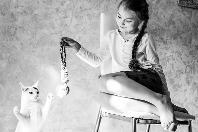Девочка играет с кошкой