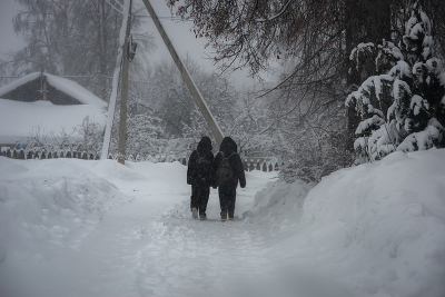 Пасмурная погода, сильная метель, по занесенной тропинке идут дети грустно прижавшись друг к другу, идут домой, не бегают не смеются, почему , фотография задает вопрос, но ответа мы не знаем...