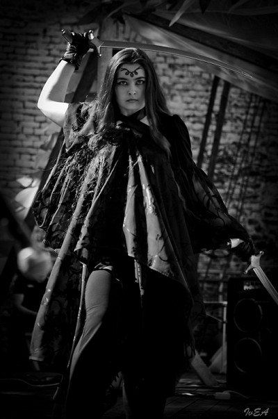 нога кажется слишком большой. Угроза вроде как должна исходить от оружия в руке "Воительницы". а исходит от ноги )))