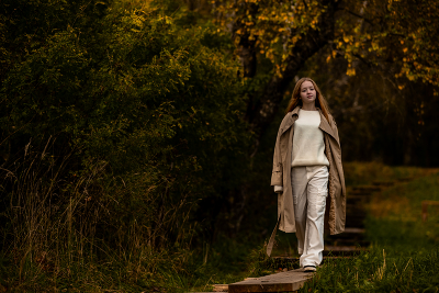 Аделина спускается к пруду