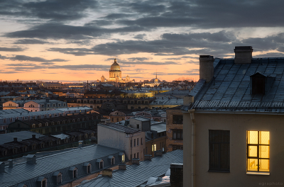 Петербург с крыш - ночь, окно, Апраксин двор, Исаакиевский собор