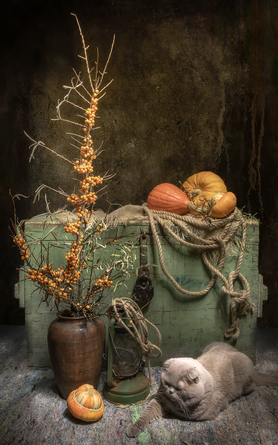 И кот требовательно лапой привлекает внимание