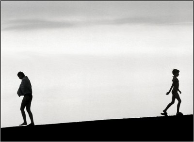 В сандалях на босу ногу о карьере говорить как-то несерьезно....требуется плотно вникнуть в суть дела, чтобы добиться где-то успехов, а не шалтай-болтай, именно такие ассоциации возникают в связи с этими сандалями на босу ногу... в них-то она и соскользнет вниз, к тому неудачнику, что слева...и будут они спина к спине