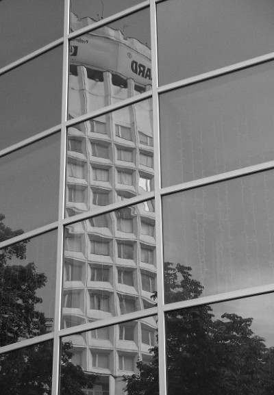 Потому что здание BELHARD на работе изображено. Вернее его отражение