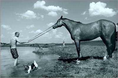 Хорошо, что это читается без комментариев автора. Коник ив самом деле не хотел идти в воду, но потом плавал с удовольствием