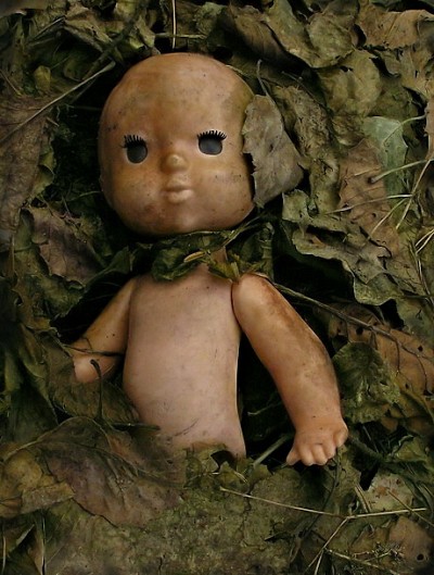 А вообще: Прогуливались с дочкой вдоль берега реки Вилии. Вода уже ушла в русло, в низинах и ямах остался всякий мусор и вещи- конечно же, любимые пластиковые бутылки, ботинки, одежда, и вот такая кукла...