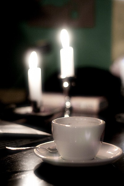 Красивое боке. Кажется, будто свеча каплями света стекает в чашку