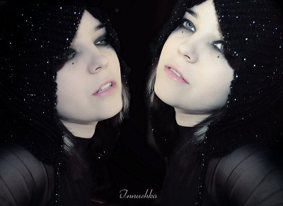 Чего-то не хватает. Возможно чб более контрастный и лучше смотрелся. А две симметричные точки под глазами - это часть мэйкапа или родинки?