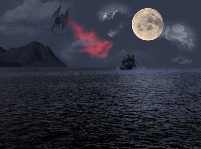 Алексей Жалейко (AlexZ), то есть блин дракон атакующий парусник под луной, повешенной прямо на тучи- бывает, а пламени, такого красивого- не бывает. Верю всему происходящему!