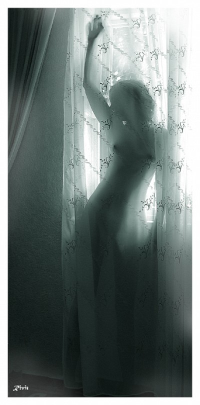 Всегда люблю естественность в таких снимках. Вот смотрю и думаю, что же изображает девушка, стоя за занавеской в такой позе? Ответ приходит один - неуклюже позирует фотографу, изображая красоту