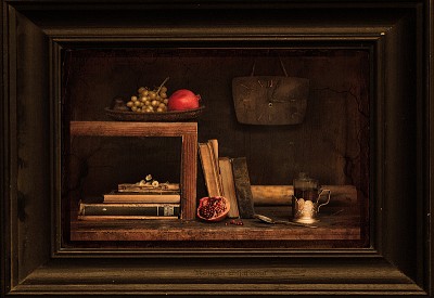 Цвета не плохи а вот со светом не доработал. композиция вялая . На чай в данном случае просится контровой , на часики моделирующий или бличок какой нибудь, книги утопить в тени поглубже под полку так чтобы акценты на трёх световых пятнах держались как на трёх китах . Вот тогда и рек и оценка будут .