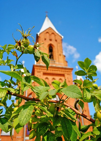 На заднем плане - костел св. Алексея (пгт. Ивенец, Минская область)