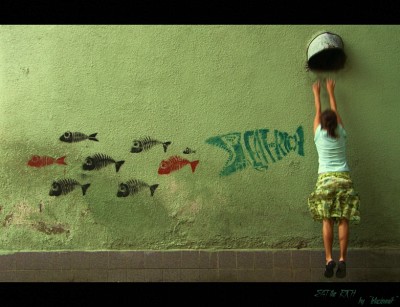 Татьяна Зыгалова, прохожу я возле этой зеленой стены, а тут из нее выплывают рыбы, девушку, проходящую рядом начинает засасывать в трубу... под рукой оказался фотоаппарат...