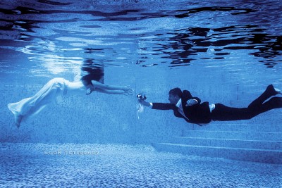 Свадебная фотография Неля и Игорь — молодожены. Снимать под водой оказалось на много сложнее чем я себе предпологал, я знал что будет не легко, но понял когда без особой подготовки принялся осуществлять свою идею. К томуже что молодожены восем не умели плавать!!! Замёрзли и намучались! |