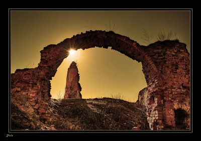 валентин захаров, пятна на небе не от обработки. если переходы между тонами, то от сжатия, если те, которые над аркой руин, то это облачка. а вот пятнышко в ПВУ - было на объективе, не заметил...